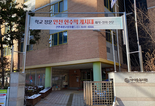 와이어 시스템을 통해 현수막을 팽팽하게 유지하며, 구조물이 외부로 돌출되지 않아 교문 경관을 해치지 않습니다.